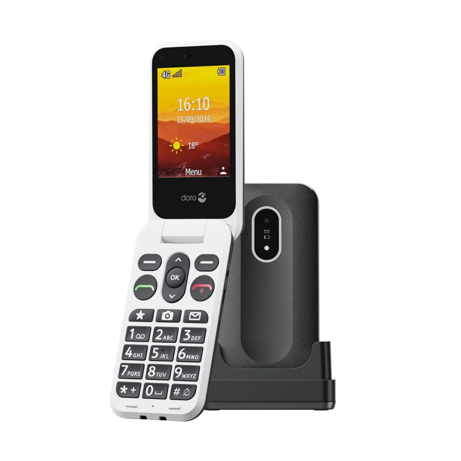 Doro Leva L20 is a simple 4G flip phone designed for easy communication and everyday reassurance. It has two clear displays — a bright 2.8-inch main screen and a handy external screen to see who’s calling. Large, well-spaced keys make dialling and texting effortless, while Doro ClearSound keeps voices crisp. The Assistance Button can alert trusted contacts when needed, and the phone works with hearing aids. With USB-C charging, IP54 splash resistance, and a comfortable fold design, it’s made to feel familiar and dependable.