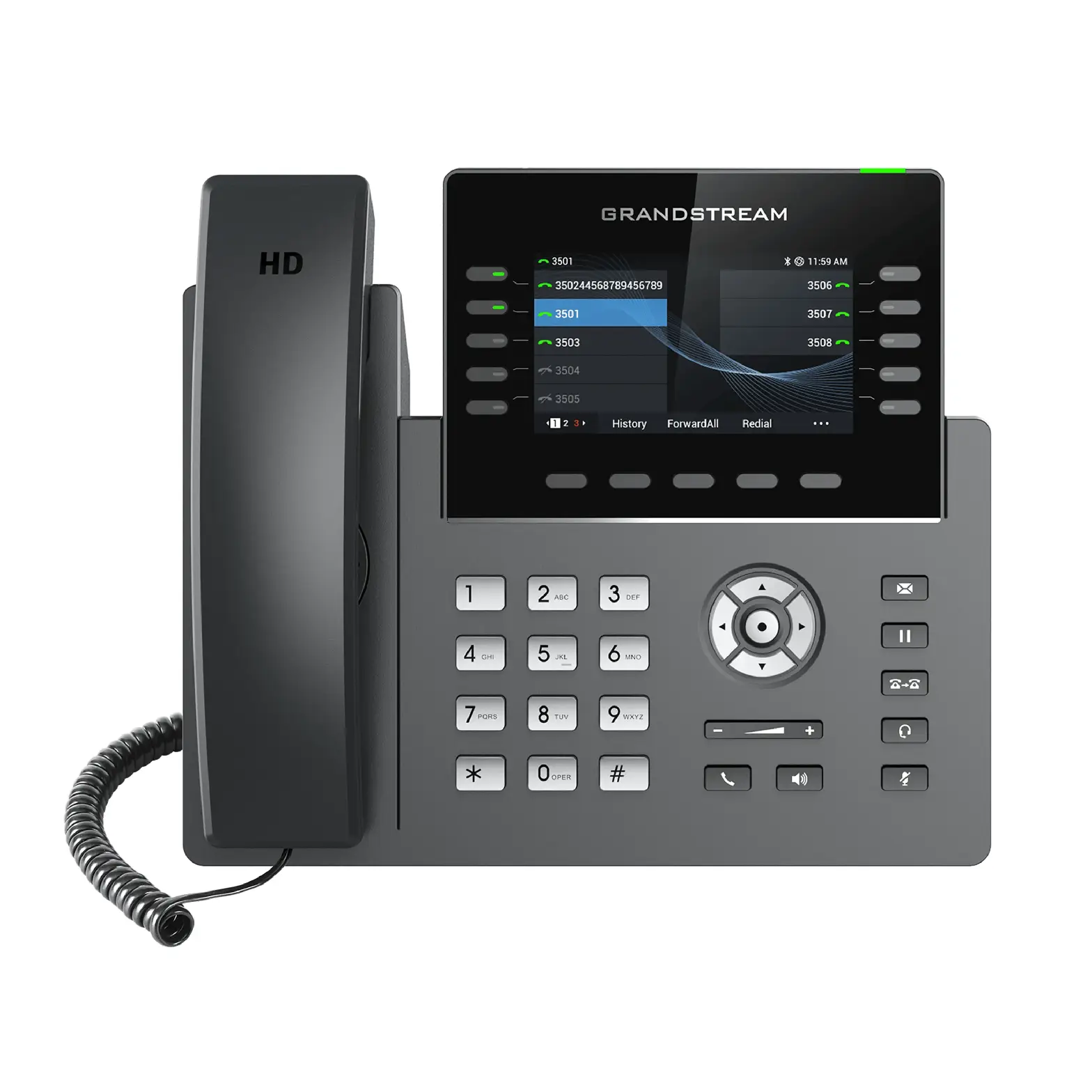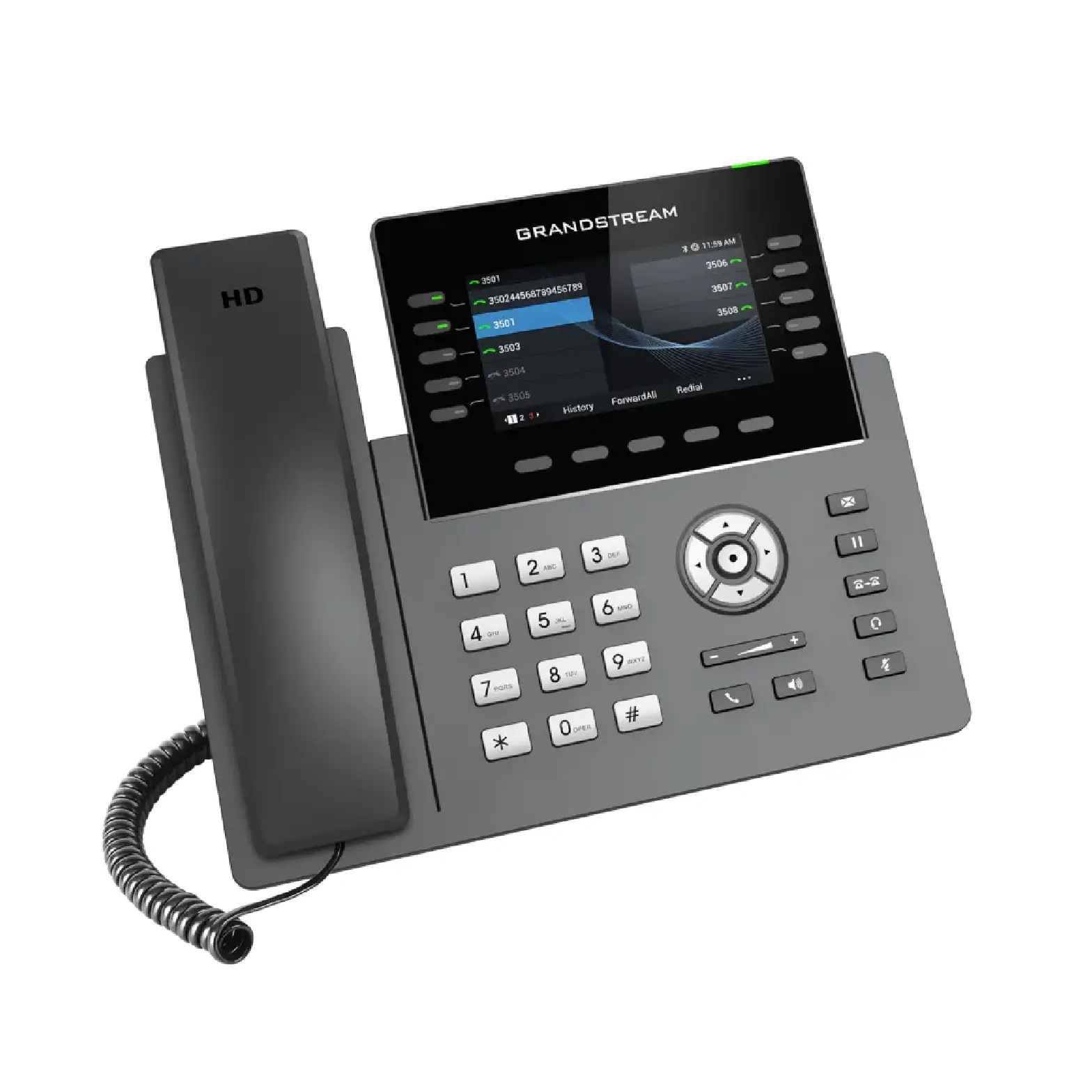 The Grandstream GRP2615 is a high-end IP phone built for busy professionals who need flexibility and performance. It features a 4.3-inch colour display, 10 line keys, and 40 virtual multi-purpose keys for fast access to contacts and functions. With built-in dual-band Wi-Fi, Bluetooth, and Gigabit ports, connectivity stays seamless. HD audio on handset and speakerphone keeps every call clear, while PoE support and advanced encryption make setup and security effortless. Designed for enterprise use, it’s a robust desk phone made for clarity, speed, and reliability.